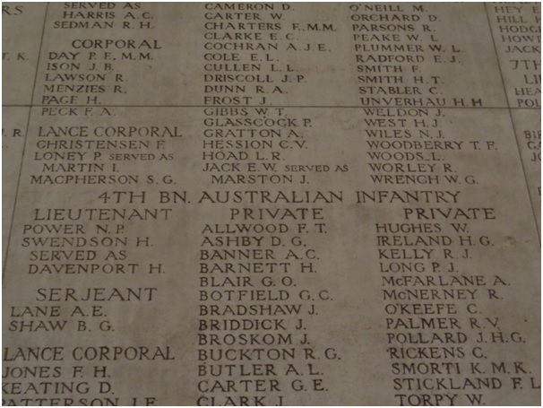 A. C. Janion served as A. C. Johnson on 45th Battalion panel at the Menin Gate Memorial, Belgium (Photograph: H. Thompson 11/9/2012)