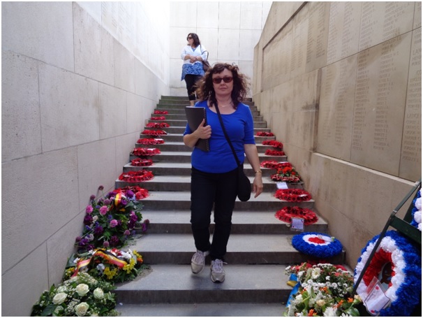 Wreaths on the stairs at the Menin Gate Memorial (Photograph: H. Thompson 29/8/2014)