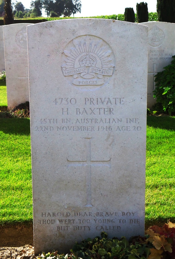 Private Harold BAXTER (45th Battalion) was killed in action near Guedecourt, France.