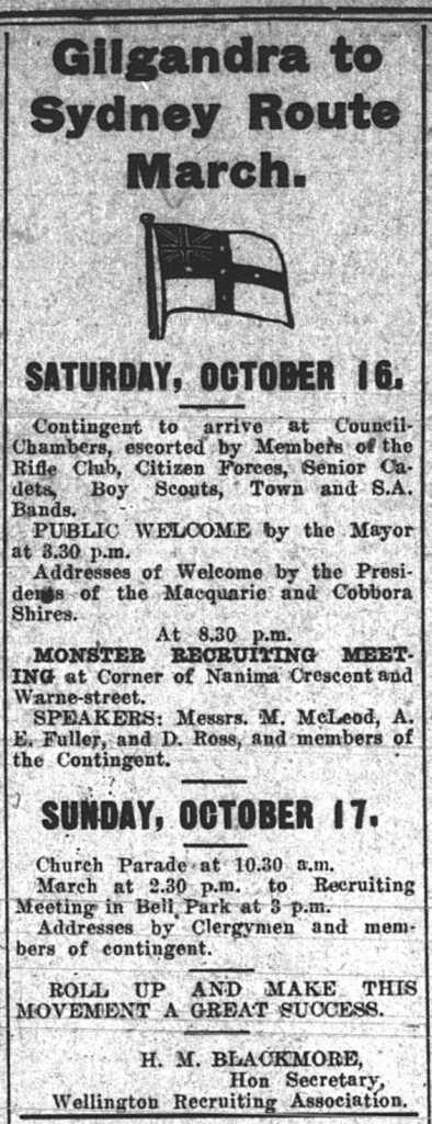 He completed his medical examination at Wellington on 22nd October 1915. He then caught up with the Coo-ees, and was attested by Captain T. A. Nicholas at Orange on 24th October 1915.