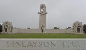 F. C. Finlayson’s name on the Villers-Bretonneux Memorial, France (Photograph: S. & H. Thompson 7/9/2014)