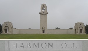 O. J. Harmon’s name on the Villers-Bretonneux Memorial, France (Photograph: S. & H. Thompson 7/9/2014)