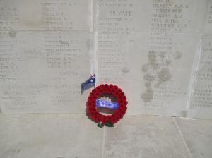R. J. Wilson’s name on the Villers-Bretonneux Memorial, France (Photograph: S. & H. Thompson 7/9/2014)