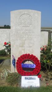 He has no known grave. His name is remembered on Panel 10 at the V.C. Corner Australian Cemetery and Memorial at Fromelles, France.