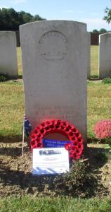 Charles Alfred Hampson’s headstone at H.A.C. Cemetery, France (Photograph: S. & H. Thompson 9/9/2016)
